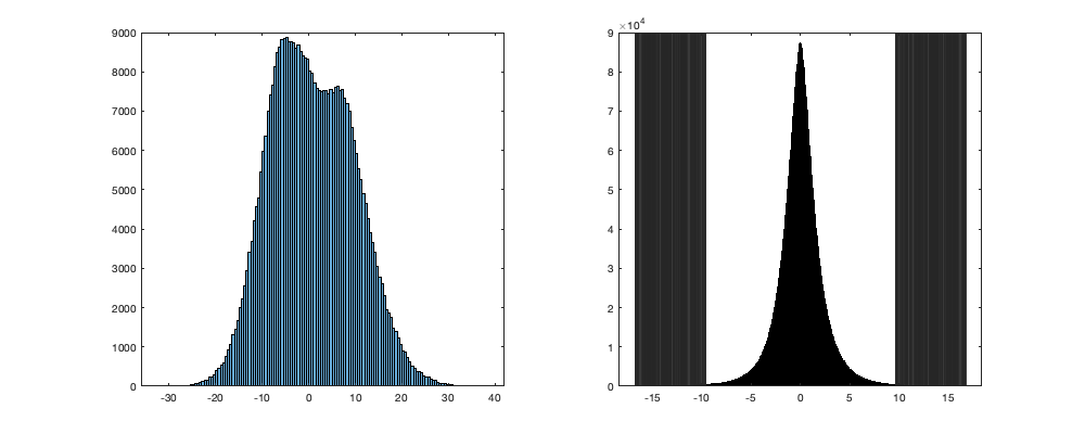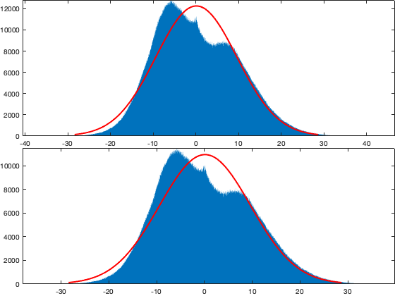 for i_uv=1:2 cond=true; while cond % Delete value less than 5 datapoint (1hr) sumisnand = splitapply(@(x) sum(~isnan(x)),vi.(uv{i_uv}),g.day_id); tmp = sumisnand<=4; vi.(uv{i_uv})(tmp(g.day_id,:))=nan; vi.(uv{-i_uv+3})(tmp(g.day_id,:))=nan; summean = splitapply(@(x) mean(x,'omitnan'),vi.(uv{i_uv}),g.day_id); sumres = vi.(uv{i_uv})-summean(g.day_id,:); stdres = splitapply(@(x) std(x,[],'all','omitnan'), sumres, g.time_doy); tmp=14; stdres_smooth = movmean([stdres(end-tmp:end,:) ; stdres ; stdres(1:tmp,:)],20); stdres_smooth = stdres_smooth((tmp+2):end-tmp,:); n = sum(~isnan(sumres(:))); alpha=.05; tval = tinv(alpha/n/2,n-2).^2; G = (n-1)/sqrt(n) * sqrt(tval./(n-2+tval)); thr = abs(G*stdres_smooth); id_rm = abs(sumres)>thr(g.time_doy); if sum(id_rm(:))==0 cond = false; end disp(sum(id_rm(:))) % Apply vi.(uv{i_uv})(id_rm)=nan; vi.(uv{-i_uv+3})(id_rm)=nan; end end % sum(~isnan(vi.v(:))) % 13'975'228 if plotit figure('position',[0 0 1000 400]); subplot(1,2,1); histogram(summean) subplot(1,2,2); histogram(sumres); xline(thr); xline(-thr) end % sum(~isnan(vin(:))) % 13'842'763
